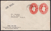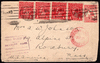 1d Kangaroo Die II used 1916 (16 Apr) to U.S.A., uprated with KGV 1d Red (4) tied by Brisbane machine cancel, censor datestamp in red, Roxbury (Mass) Special Delivery Fee boxed cachet in violet. Attractive double rate cover slightly shortened at right