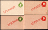 1928 KGV Oval Embossed ½d Orange, 1d Green, 1½d Red, 2d Brown each CTO with 'G.P.O./MELBOURNE' cds for U.P.U. distribution, very fine. The ½d, 1d and 2d represent the only printings of these values on Post Office stock, the dies being reserved otherwise for stamping of private envelopes. BW EP29,30,31w,33, cat AU$1100 (4)
