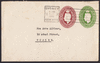 Stamped-to-order Envelopes: 1950-51 2d Violet and 2d Green KGVI oval embossed envelopes, used by Harris Scarfe Ltd. (Adelaide) for the 2d printed matter rate. This rate came into force on 1 December 1950, at which time the colour of the embossing should have been changed from violet to green, however one printing was made for Harris Scarfe in violet. The 2d violet with some toning down right side of envelope. See Note in BW catalogue, BW ES84,85, cat AU$875 (2)